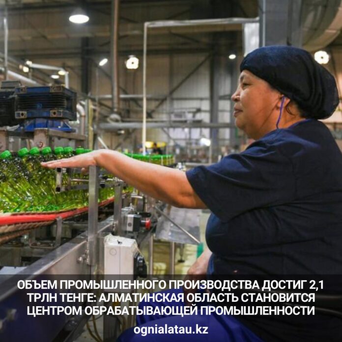 Объем промышленного производства в Алматинской области вырос на 108,7%, 90% которого приходится на обрабатывающую промышленность.