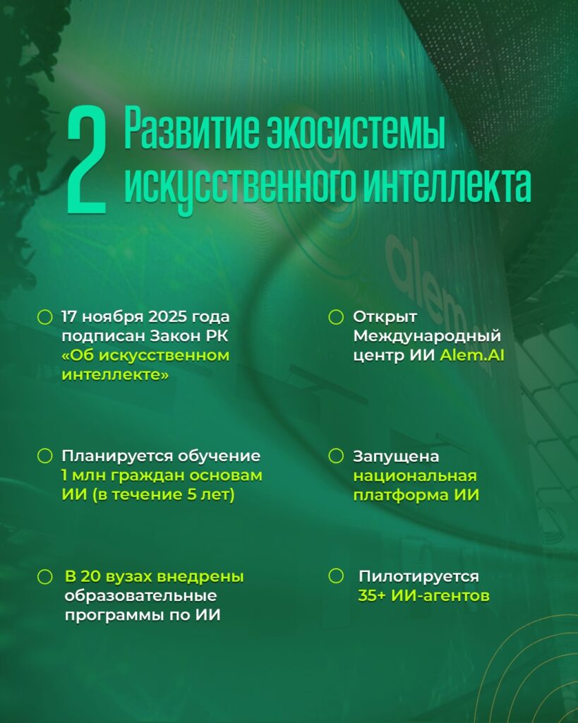 ДомойЖаңалықтар | НовостиЦифровизация и искусственный интеллект 30.12.2025 Цифровизация и искусственный интеллект FacebookVKTelegramWhatsAppTwitterCopy URL FacebookVKTelegramWhatsAppTwitterCopy URL Предыдущая статьяЦифрландыру және жасанды интеллект Жаңалықтар Цифрландыру және жасанды интеллект Цифровизация и развитие ИИ Цифрландыру мен жасанды интеллектіні дамыту Укрепление потенциала отечественного АПК Отандық агроөнеркәсіп кешенінің әлеуетін нығайту Развитие транспортно-логистического потенциала страны