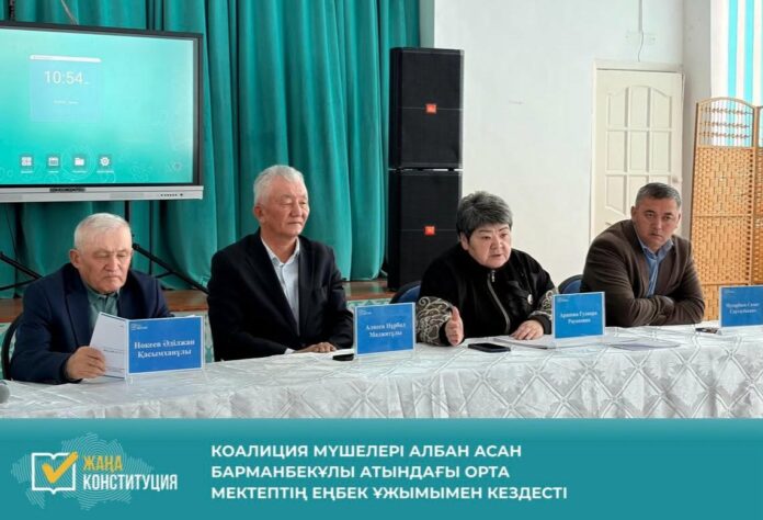 «Әділетті және Прогрессивті Қазақстанның Халықтық Конституциясы үшін!» коалициясының мүшелері Қарасаз ауылындағы Албан Асан Барманбекұлы педагогикалық ұжымымен кездесіп, 15 наурызда өтетін республикалық референдумға шығарылған жаңа Конституция жобасының негізгі бағыттарын талқылады.Кездесу барысында коалиция мүшелері жаңа редакцияда Қазақстанның әлеуметтік мемлекет екені нақты әрі айқын бекітілетінін атап өтті. Азаматтардың заңда белгіленген тәртіппен ақы алынбай медициналық көмек алуға құқығы сақталатыны, әлеуметтік міндеттемелердің конституциялық деңгейде нақтыланатыны түсіндірілді.«Жаңа Конституция әлеуметтік кепілдіктерді қысқартуға емес, оларды нақты әрі құқықтық тұрғыдан айқындауға бағытталған. Әлеуметтік мемлекет қағидаты – декларация емес, бюджет пен заңнамалық міндеттемелер арқылы қамтамасыз етілетін нақты норма. Бұл – азаматтардың денсаулық сақтау мен білім беру саласындағы құқықтарының сақталуының құқықтық кепілі», – деді коалиция мүшесі Алиев Нұрбол МажитұлыҰжым өкілдері жаңа Конституция жобасының мазмұнына қатысты пікір білдіріп, референдумға қатысуға ниетті екендерін жеткізді.