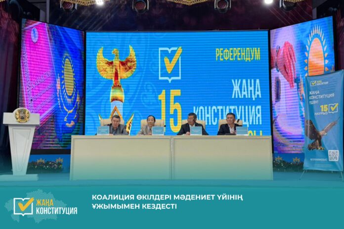 «Әділетті және Прогрессивті Қазақстанның Халықтық Конституциясы үшін!» Жалпыұлттық коалициясының мүшелері Райымбек ауданы Нарынқол ауылындағы Баққожа Мұқай атындағы мәдениет үйінің еңбек ұжымымен кездесіп, 2026 жылғы 15 наурызда өтетін республикалық референдумға шығарылған жаңа Конституция жобасын талқылады. Кездесу барысында коалиция мүшелері жаңа Ата Заңның басты жаңалықтарына тоқталды. Оның ішінде адам құқықтарының басымдығы, әлеуметтік кепілдіктердің сақталуы, еңбек адамдарының құқықтарын қорғау, цифрлық қауіпсіздік және дәстүрлі отбасы құндылықтарын нығайту мәселелері бар. «Жаңа Конституция – әділетті мемлекеттің іргетасы. Мұнда әр азаматтың өмірі, құқығы мен бостандығы ең жоғары құндылық ретінде бекітілген. Білім мен медицина тегін, еңбек қорғалады, цифрлық деректеріңіз қауіпсіз болады», – деді коалиция мүшесі Нұрғожаев Жанат Мұхтарұлы. Ұжым өкілдері өздерін толғандырған сұрақтарды қойып, нақты әрі түсінікті жауаптар алды. Кездесу соңында жиналғандар референдумға белсене қатысып, ел болашағына өз үлестерін қосатындарын жеткізді.