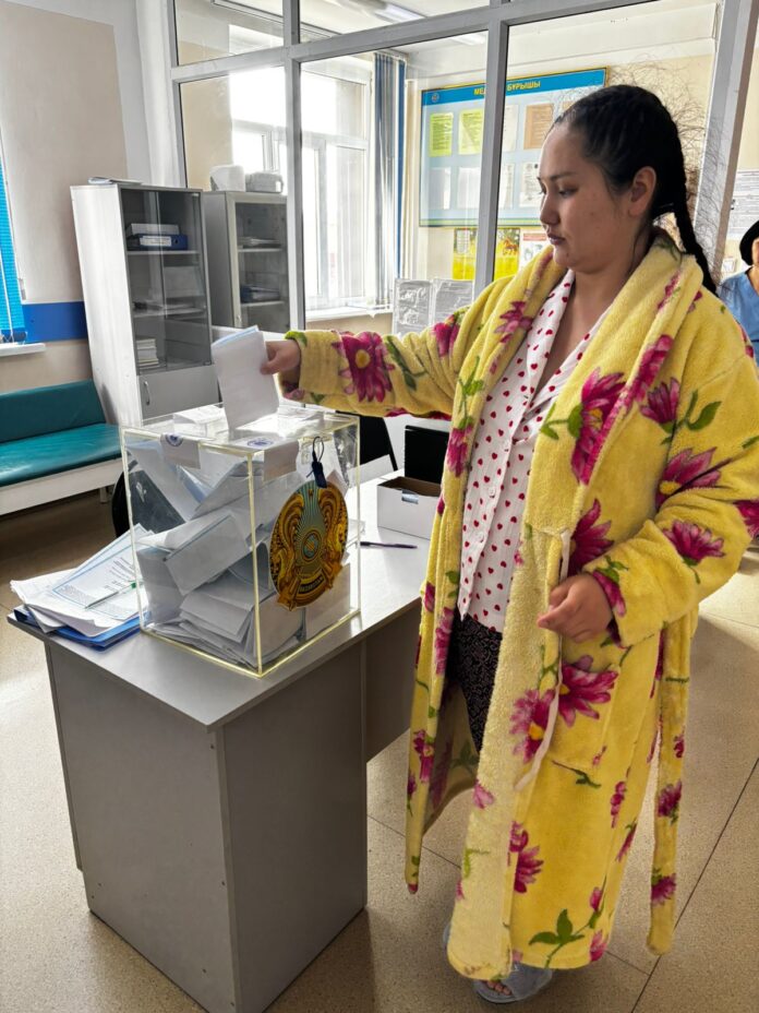 Алматы облысында босанған және жүкті әйелдер де дауыс беруге мүмкіндік алды. Облыстағы жабық сайлау учаскелерінде жас аналар мен болашақ аналар өз таңдауын жасап, дауыс берді.Аймақта барлығы 12 босану бөлімшесі мен 1 перинаталдық орталық жұмыс істейді. Осы мекемелерде арнайы жабық сайлау учаскелері ұйымдастырылып, медициналық мекемеде жатқан азаматтардың дауыс беруіне барлық жағдай жасалған.Алматы облыстық денсаулық сақтау басқармасы басшысының орынбасары Лейла Серикбаева медициналық ұйымдардағы жұмыс қалыпты режимде жүріп жатқанын атап өтті. Оның айтуынша, пациенттердің қауіпсіздігі мен жайлылығы басты назарда.«Облыстағы барлық босану бөлімшелері мен перинаталдық орталықта жабық сайлау учаскелері ұйымдастырылды. Босанған және жүкті әйелдердің, сондай-ақ медициналық қызметкерлердің дауыс беруі үшін қажетті жағдай толық жасалды. Медициналық көмек көрсету процесі тоқтаған жоқ, барлық мекеме қалыпты режимде жұмыс істеп жатыр», – деді Лейла Серикбаева.Облыстағы босану бөлімшелерінде жатқан 470 әйел дауыс беруге қатысты.